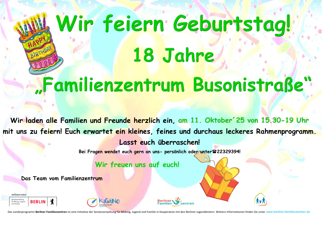 Fragen oder Voranmeldung bitte unter: 0176/64717162 oder familienzentrum.busonistrasse@kigaeno.de.